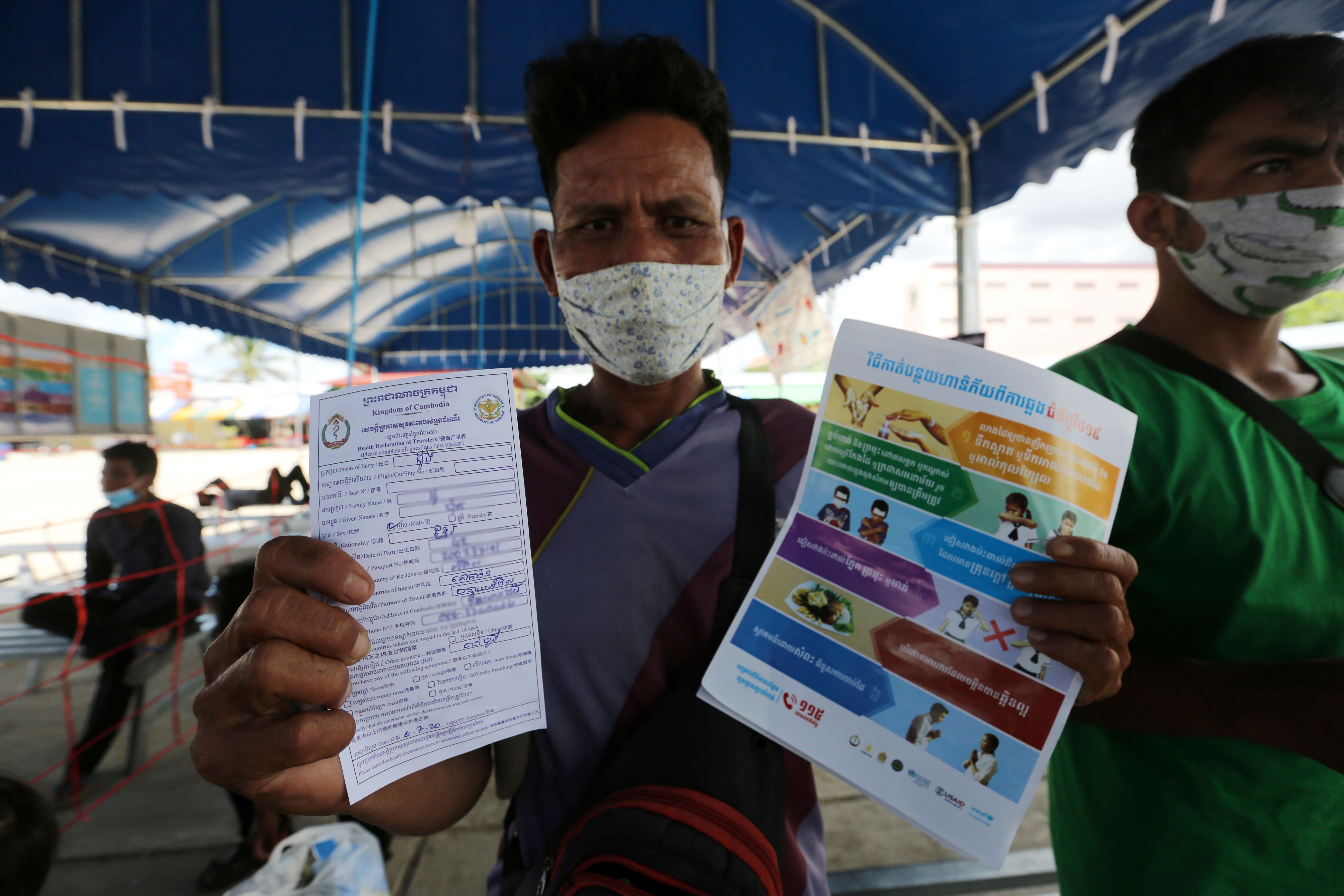 Migrant workers received health declaration at a health screening center near the Cambodian-Thai Daung international border checkpoint in Kamrieng District Battambang Province 06 July 2020.