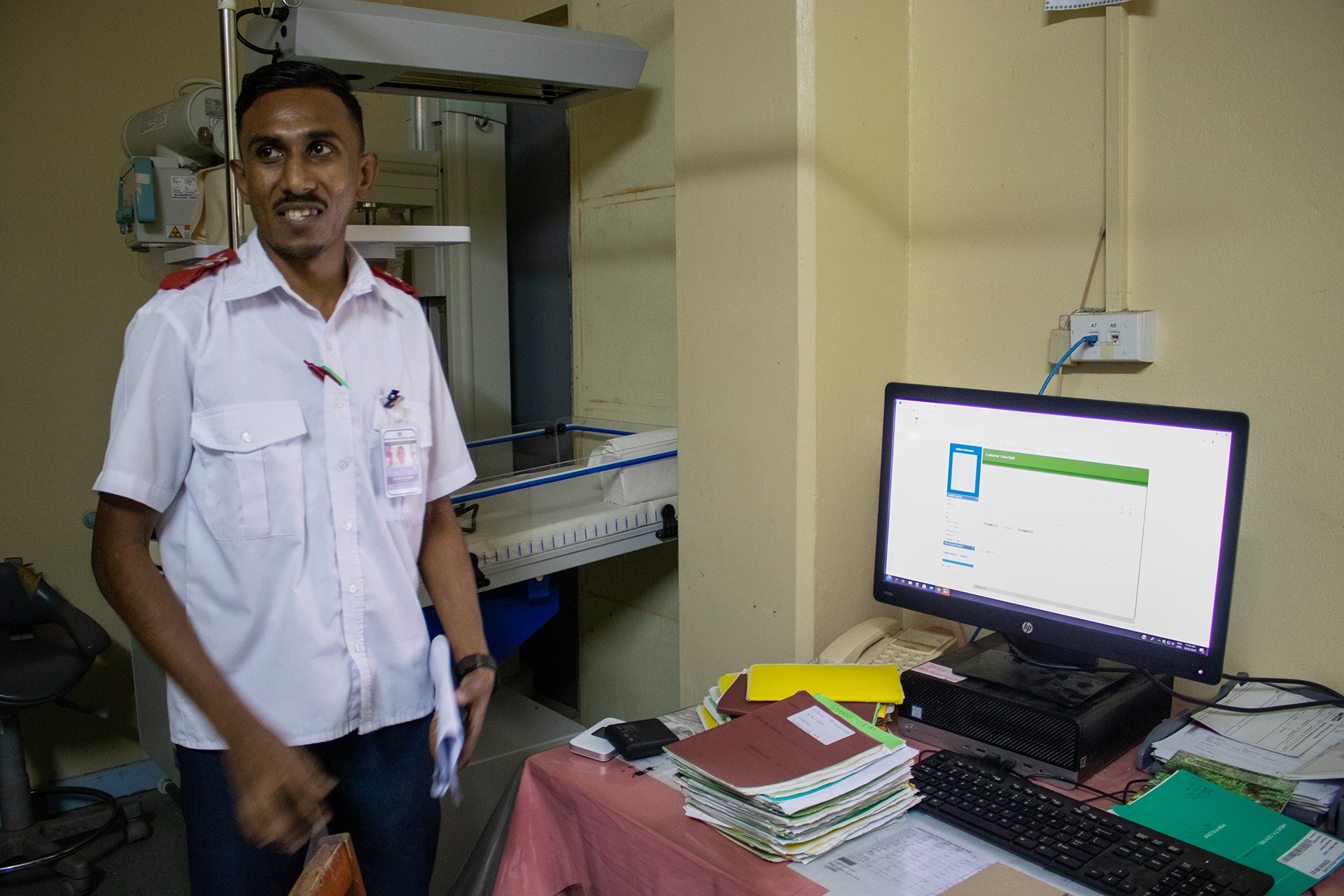 Niraj Kumar, Clinical Team Leader in Wainibokasi Hospital, shows how they use Fiji’s electronic medical record called PATISPlus. Photo: WHO/Faizza Tanggol