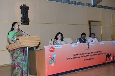 In her inaugural address, the Rajasthan Chief Minister, Mrs Raje said, “Free services in our public health system have increased footfall in institutions and quality time given to patients need to be looked at. We need an out of box and innovative thinking to reach the ultimate destination of Universal Health Coverage by riding on the vehicle of ‘Health Insurance’. We already have ‘Bhamashah Card’ in place, so we need to use this advantage for providing seamless access to various healthcare services to the people of Rajasthan.”