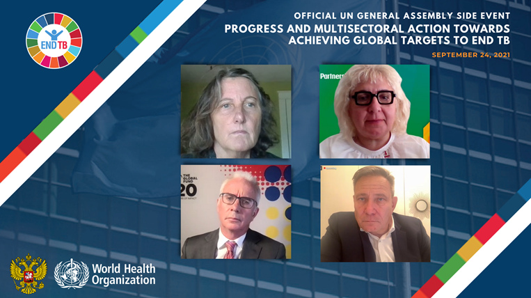 Hundreds of people virtually joined the official UN General Assembly high level side-event: "Progress and Multisectoral Action towards achieving global targets to end TB" co-organized by the World Health Organization (WHO) and the Russian Federation on 24 September 2021. Held on the sidelines of the 76th session of the UN General Assembly (UNGA), the event brought together a distinguished line up of speakers including WHO and UN Leadership, the President of the UN General Assembly, Health Ministers and national ministerial delegations, partners and civil society – all who are invested in the same cause of wiping out this leading infectious killer.