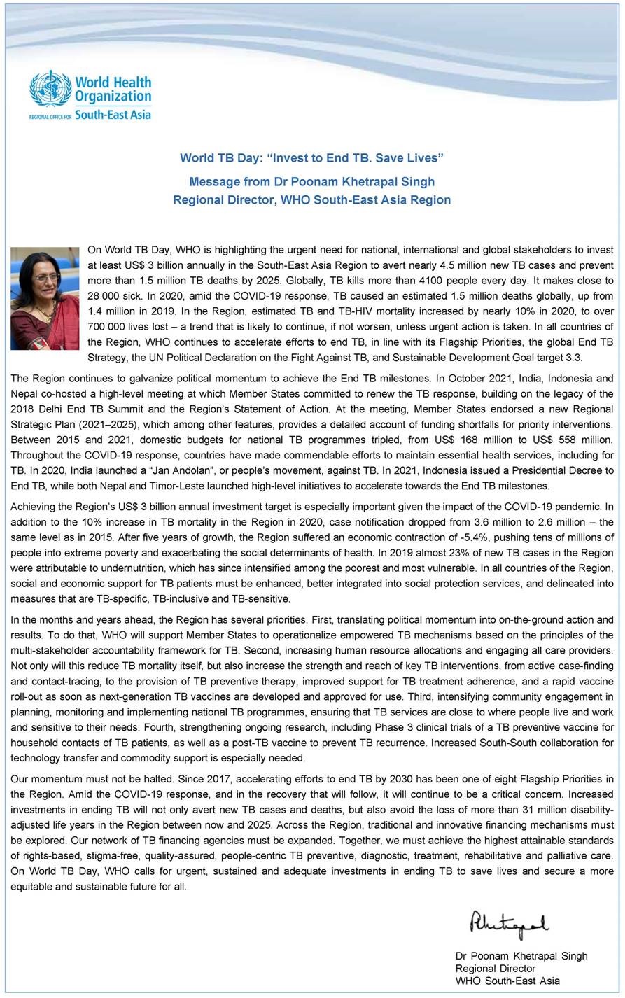 World TB Day: " Invest to End TB. Save Lives"